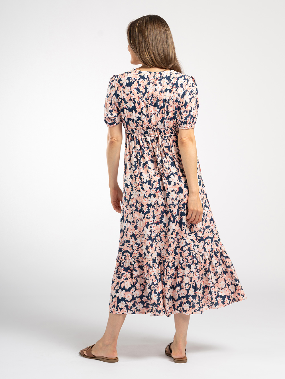 Tie Back Dress in Navy Pink Floral